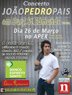 O nosso artista favorito, viaja esta semana ao estrangeiro para o primeiro concerto de 2011 fora do nosso país, o João Pedro vai estar em Inglaterra a apresentar o seu espectáculo, no próximo Sábado (26 Março).